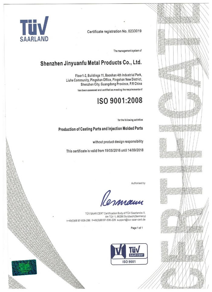 深圳市金源福五金制品有限公司成立于2003年。公司擁有8000多平方米生產(chǎn)廠地、開(kāi)發(fā)與管理精英人才、技術(shù)專業(yè)、設(shè)備精良、交通便利、服務(wù)周全、具體設(shè)計(jì)、開(kāi)發(fā)、制模、出樣、生產(chǎn)到成品出貨一體化模式生產(chǎn)廠家。已通過(guò)ISO9001:2008ISO1440/TS16949:2009國(guó)際質(zhì)量體系認(rèn)證。專業(yè)生產(chǎn)鋅合金壓鑄、鋁合金壓鑄產(chǎn)品、汽車(chē)配件、汽車(chē)后視鏡支架、車(chē)載導(dǎo)航散熱器、LED散熱器、LED燈罩、數(shù)碼電子五金結(jié)構(gòu)件、家具五金裝飾件、標(biāo)牌(LOGO)等五金壓鑄產(chǎn)品。